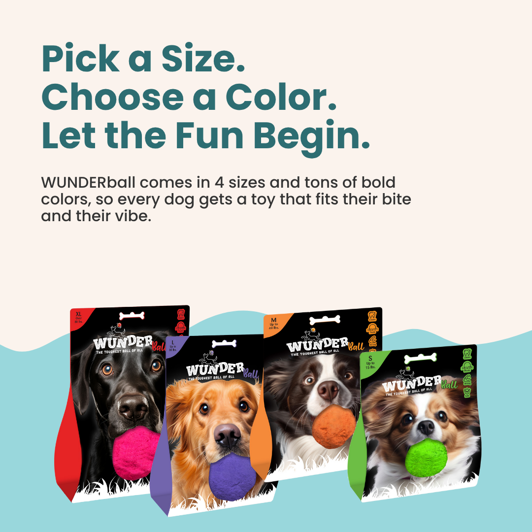 WUNDERball comes in multiple sizes—Mini, Standard, and Large—to suit dogs of all breeds and ages.