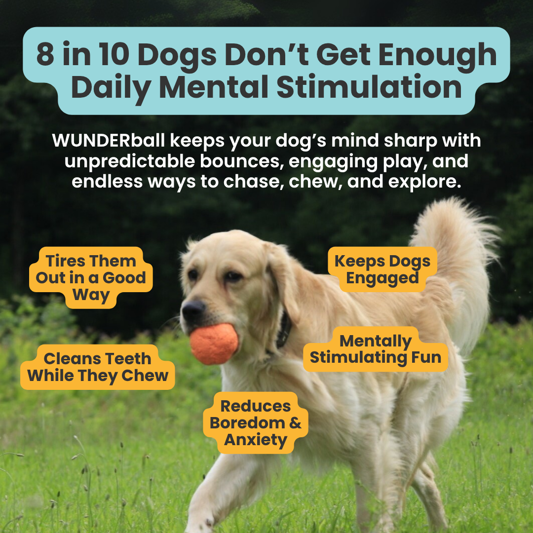 "Most owners don't realize that 20 minutes of mental stimulation equals an hour of physical exercise for dogs. The WUNDERball's erratic bounce provides both."