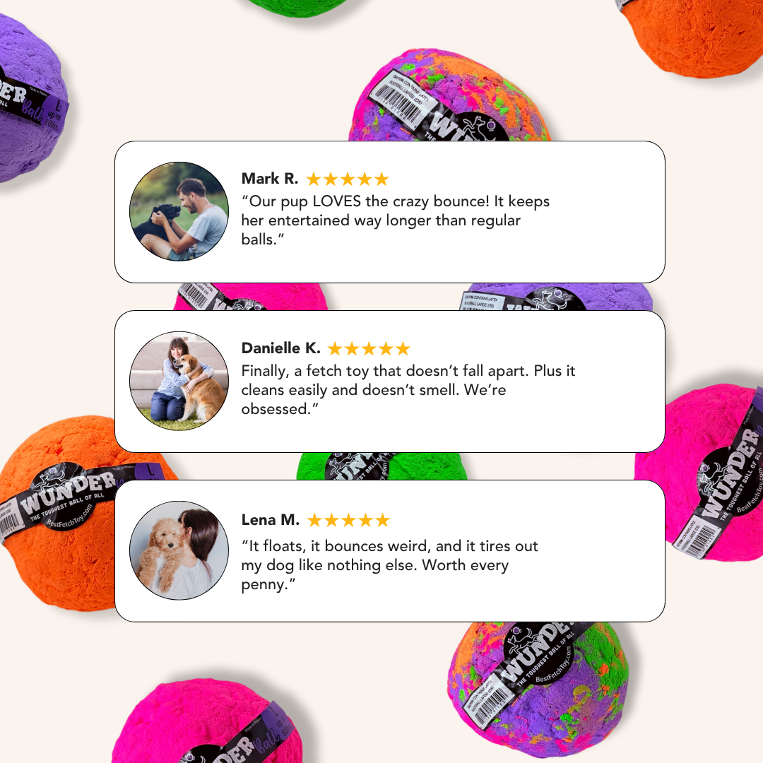 Based on feedback from a survey of 150 WUNDERball users across various dog breeds, sizes, and play styles after 30 days of consistent use.